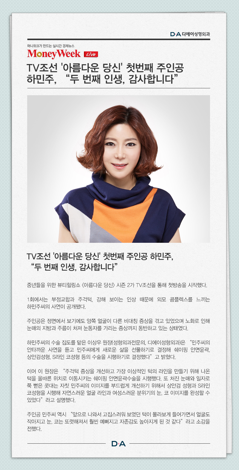TV조선 '아름다운 당신' 첫 번째 주인공 하민주, "두 번째 인생, 감사합니다"