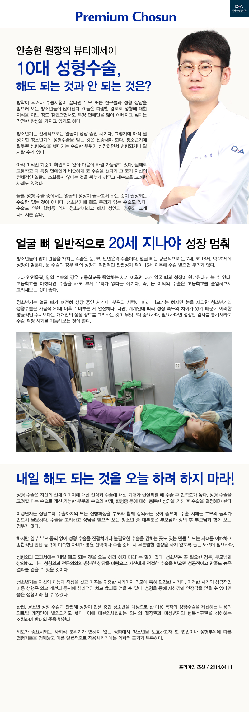 [프리미엄조선] 안승현원장의 뷰티에세이 <10대 성형수술, 해도 되는 것도 안되는 것은?>